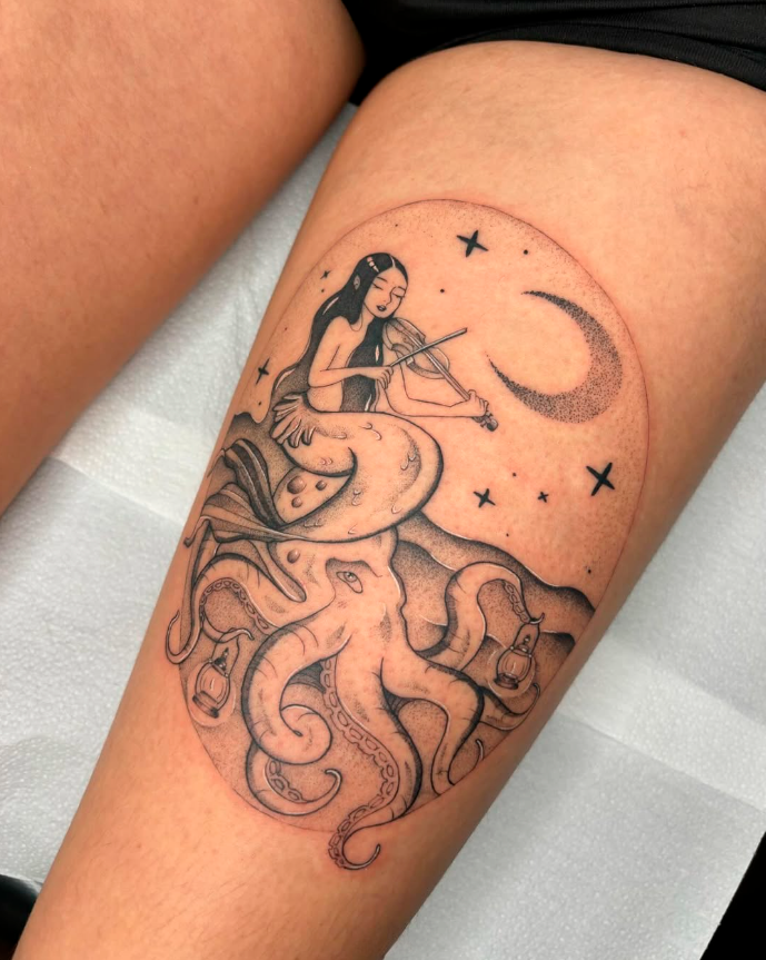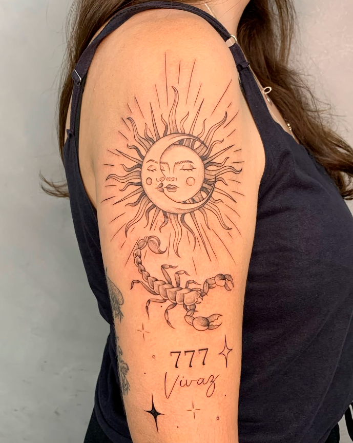 Meu universo é o da tatuagem mística. Sou apaixonada por criar artes únicas, feitas com muito carinho e atenção a cada detalhe. Me inspiro em signos, astrologia, espiritualidade e magia, e adoro trazer um pedacinho desses temas para cada projeto que faço.